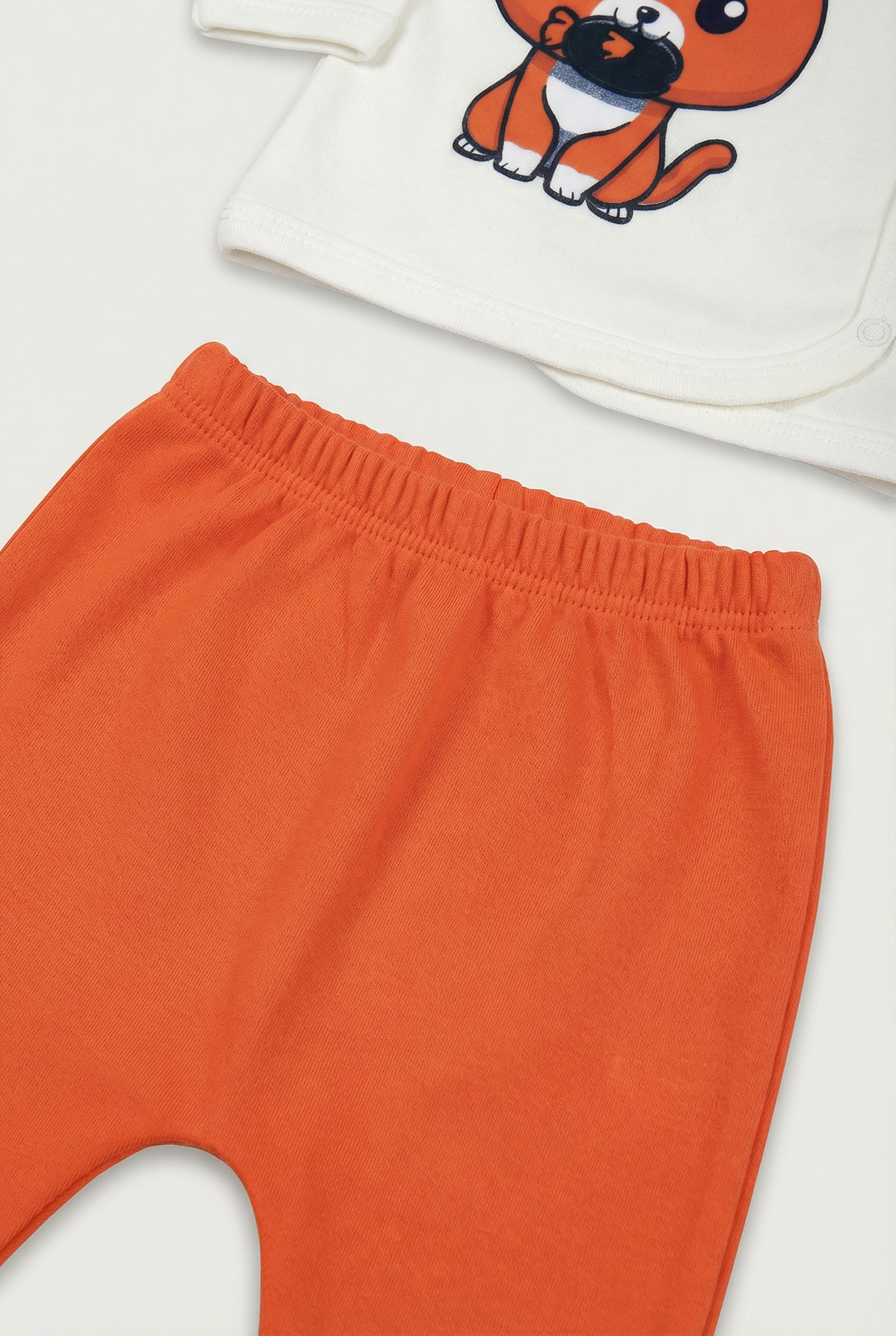 Inhalt: Wickelshirt mit Fuchs-Motiv, Hose, Mütze, Fäustlinge, Lätzchen.